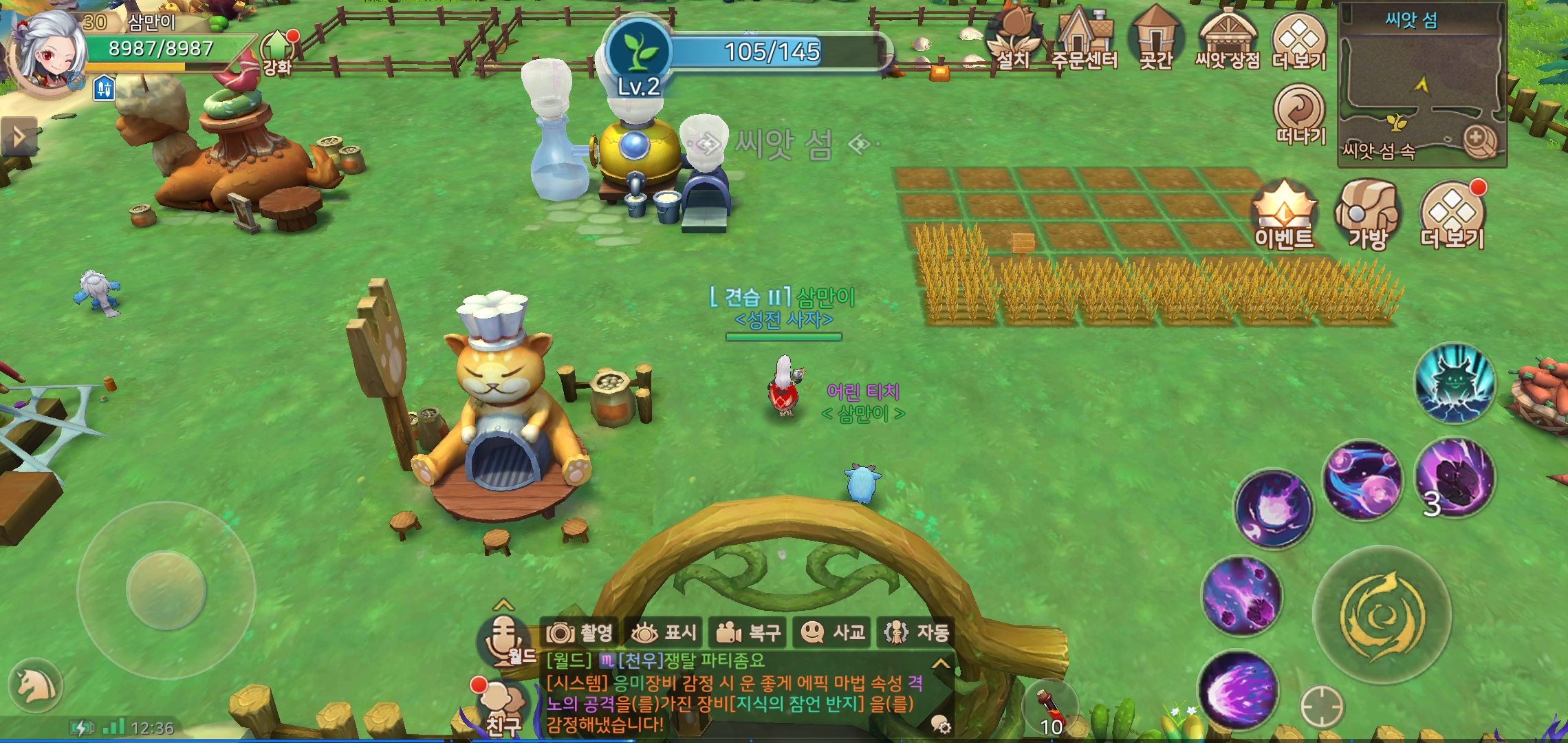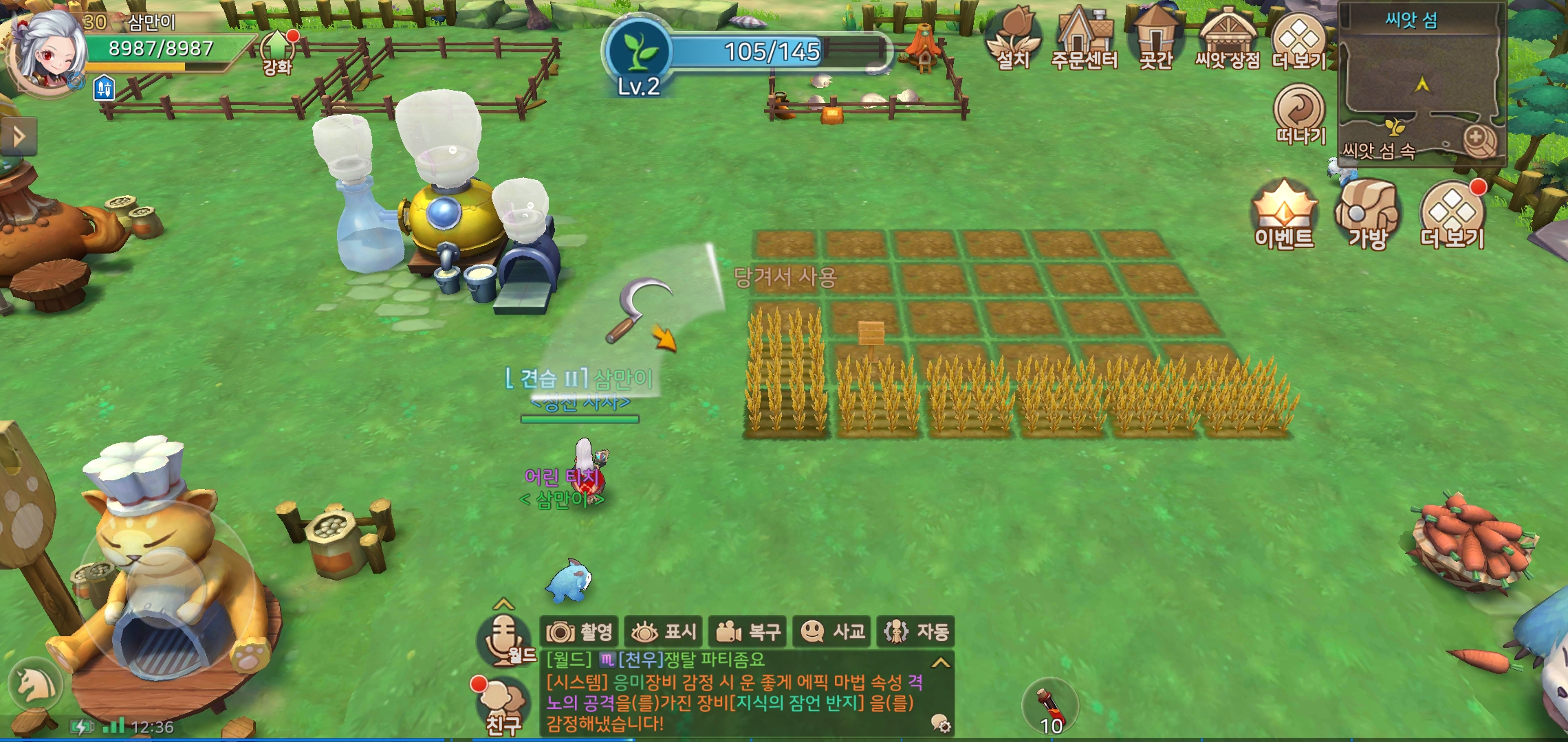 씨앗섬 관리도 중요한데요, 틈틈히 농작물을 심고 수확하면서 하루에 주어진 주문을 모두 클리어 해야 합니다. 주문을 완료하면 도시 레벨도 빠르게 향상 시킬 수 있고 만들 수 있는 것들도 늘어나게 되는데요, 필드나 던전에서 진행되는 전투에서 느끼는 피로를 씨앗섬에서 힐링한다고 생각하면 딱인것 같습니다.