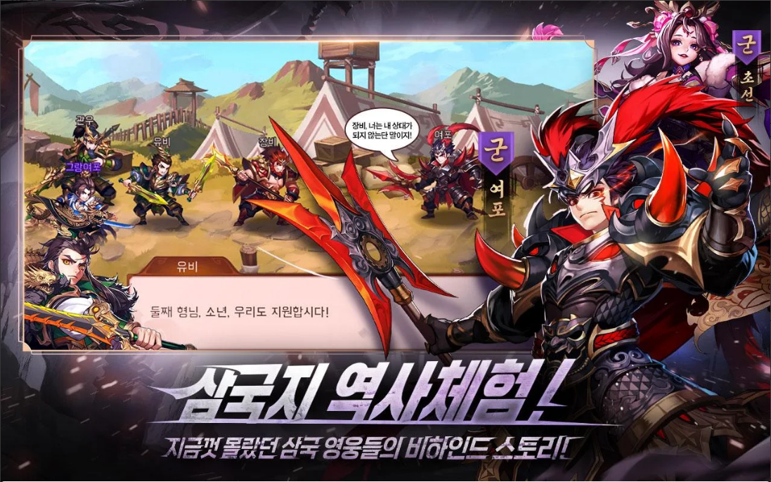 또한 삼국지에 등장하는 영웅들의 경우 익히 알고 있던 이야기들 뿐만 아니라 비하인드 스토리까지 담아내고 있는 점이 특징인데요, 게임을 즐기면서 간접적인 역사체험을 할 수 있도록 구성되어 있는 점도 그랑삼국이 가지고 있는 큰 재미 중 하나이기도 합니다.