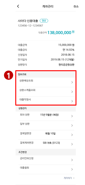 SBI저축은행 사이다뱅크 중금리신용대출의 경우 보다 효율적인 관리를 위한 서비스가 제공됩니다. 먼저 정보조회 서비스를 통해 대출관리를 보다 효율적으로 하는것이 가능합니다. 상환 예상금을 조회하거나, 회차별 납입금액을 확인할 수 있고, 금리 산정 내역서를 통해 대출금리 산정시 필요한 정보가 제대로 반영되었는지 여부 확인을 할 수 있습니다.