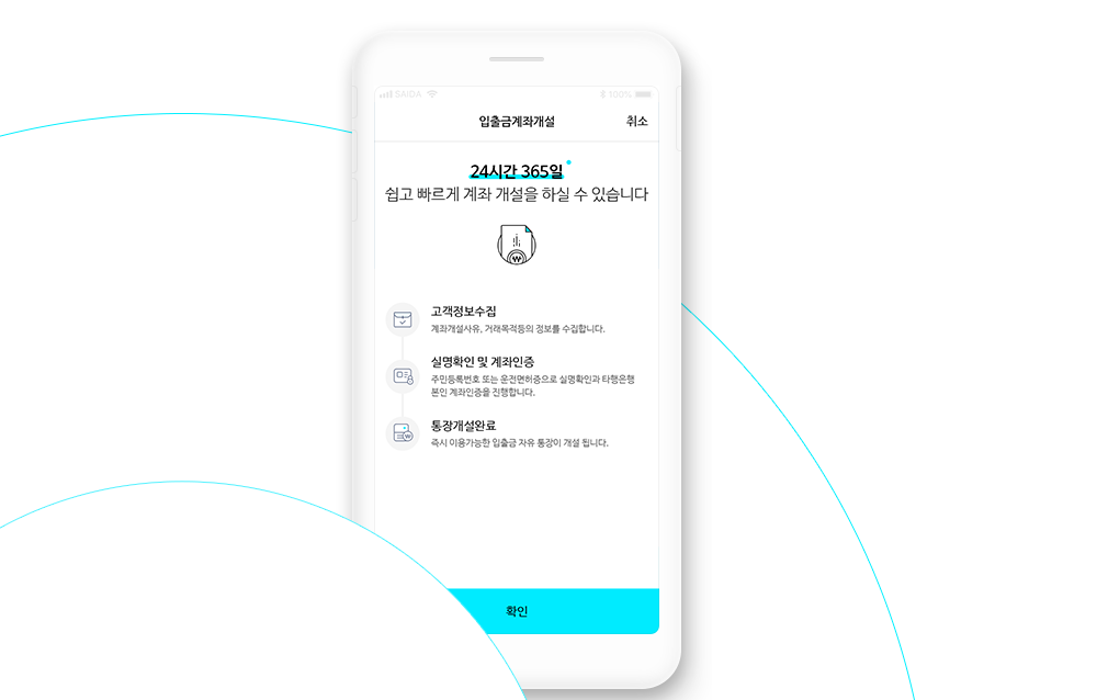 대출 뿐만 아니라 입출금통장도 사이다뱅크를 통해 간편하게 만들 수 있는데요, 연 1.7%의 높은 금리 입출금이 자유로운 통장으로 매월 이자를 지급합니다. 또한 아무 조건없이 가입자 누구든 수수료가 면제되며 영업점 방문 없이 비대면으로 24시간 365일 개설도 가능해 보다 편리한 금융업무를 볼 수 있습니다.