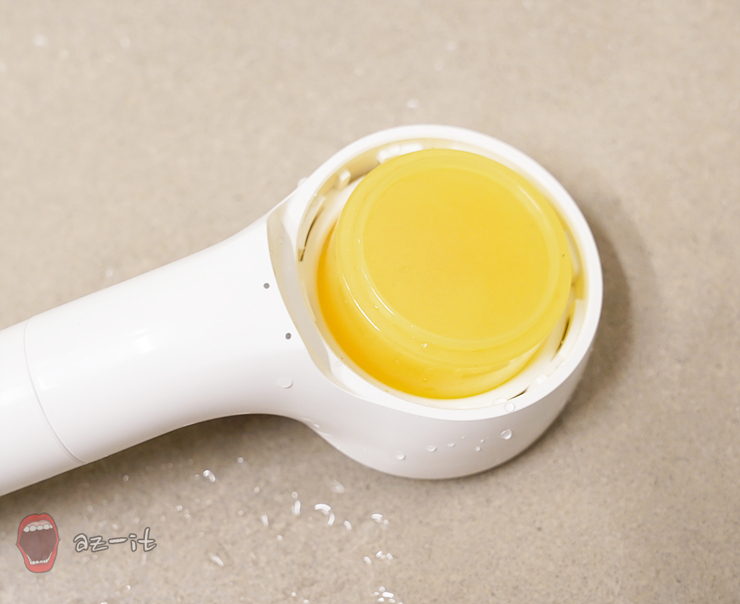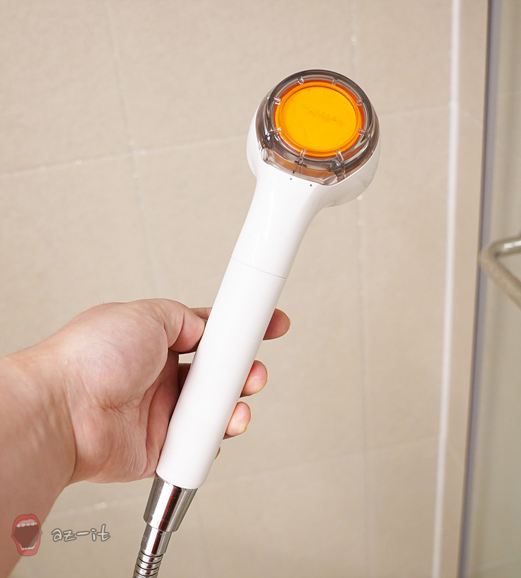 바디용 샤워기를 살펴보면 손잡이 부분에 세디먼트 필터가 투명하게 보이도록 디자인되어 있습니다. 필터창이 투명하게 되어 있으면서 필터 오염도를 보다 빠르게 확인 가능해 교체시기를 놓치지 않고 사용 가능한데요, 교체 역시 헤드와 바디 분리가 손쉬워 어렵지 않게 교체할 수 있습니다.