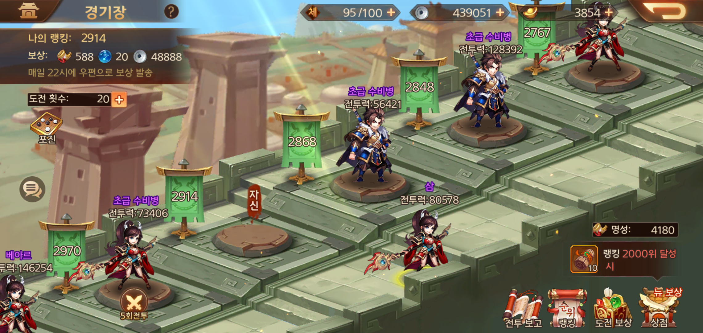 현재 보유하고 있는 무장들을 활용한 진영은 캐릭터를 포함해 빠르게 육성할 수 있는 무장들로 배치를 해두었습니다. 전투에 나서다 보면 각각의 무장이 가지고 있는 전투력도 중요하지만, 협공스킬에 따른 순간적인 폭발력을 무시할수 없기 때문에 무장이 많아 질 수록 덱구성에 대한 고민은 더욱 깊어지는 것 같습니다.