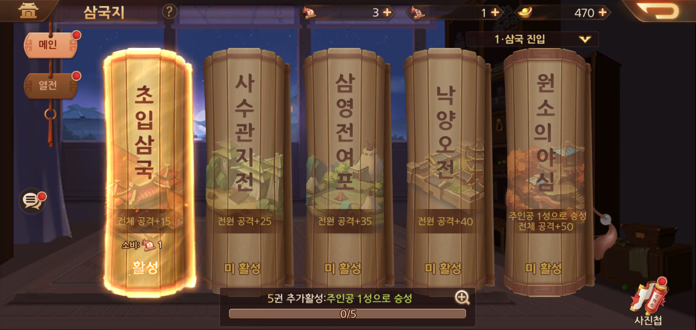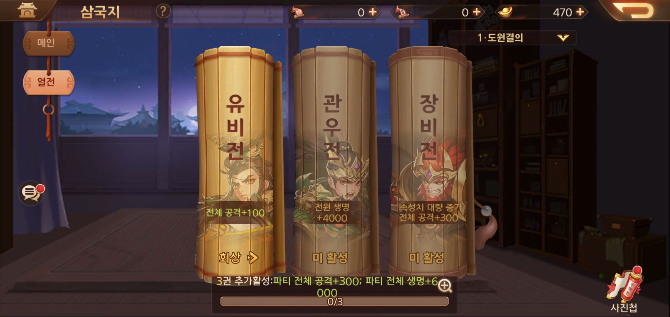 메인화면의 경우 전투를 위한 덱을 구성한 영웅들이 등장해 소속감을 느끼도록 해주고 있는데요, 출정, 천하 열전에 이르기까지 단순히 천하제패를 위한 모험이 아닌 삼국지가 가지고 있는 재미를 고스란히 즐길 수 있도록 해주고 있어 더욱 흥미진진한 플레이가 가능합니다.
