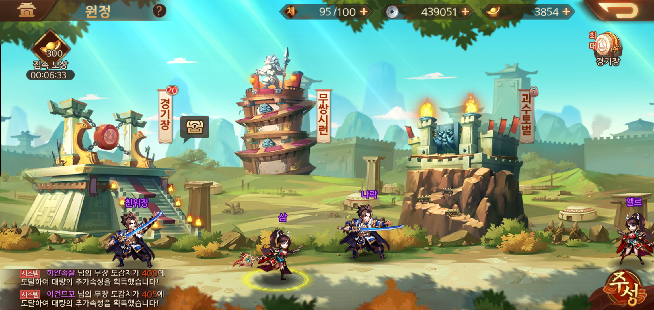 수집한 무장들은 천하로 나아가 삼국스토리에 따른 플레이를 바탕으로 경기장을 통해 유저간 실력을 겨루거나, 무쌍시련등으로 자신의 한계가 어느 정도 인지 가늠할 수 있습니다. 처음엔 욕심없이 플레이를 하다가도, 경기장이나 무쌍시련을 통해 강해지는 모습에 괜히 흐뭇한 미소가 지어지기도 하더군요.