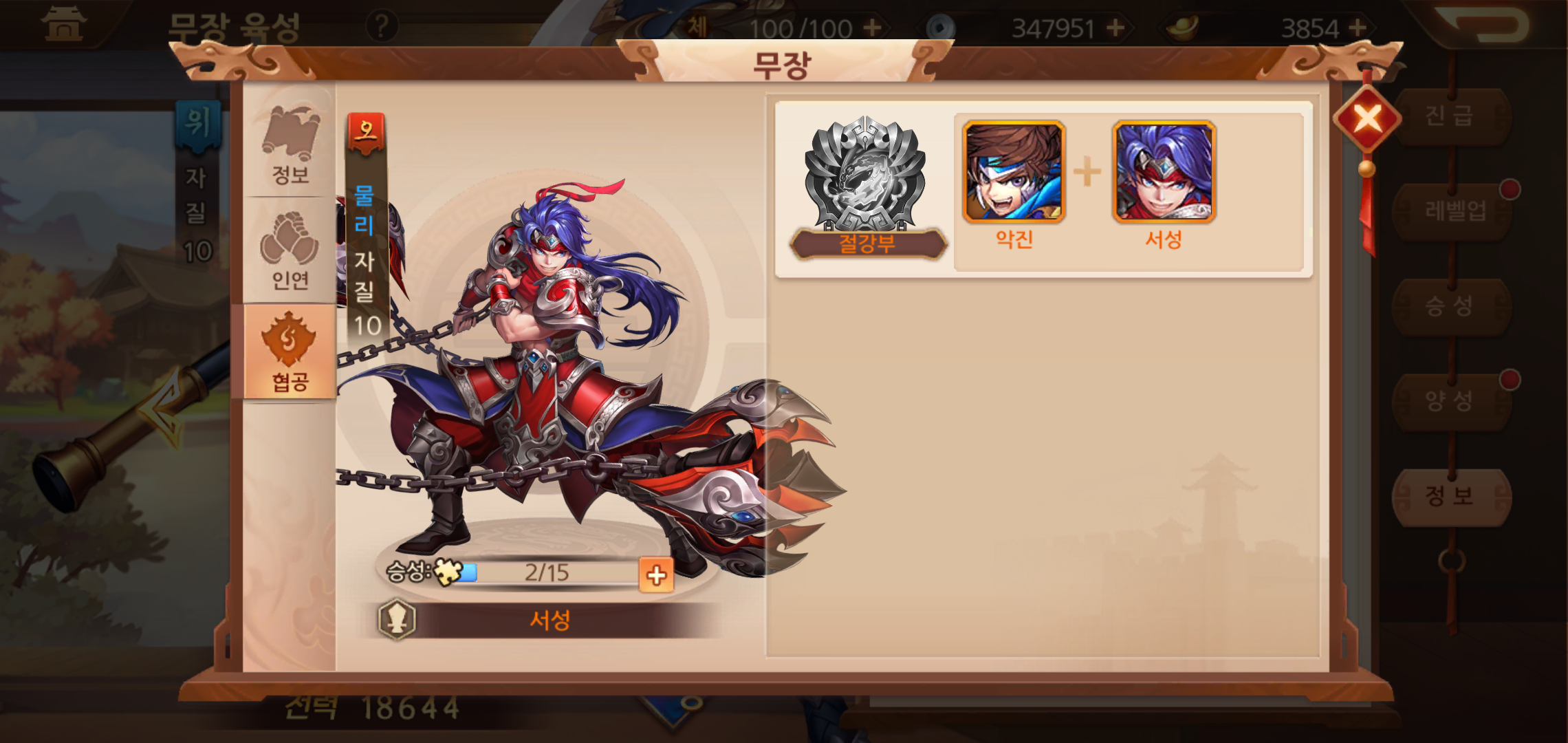 무장들은 협공을 통한 공격적인 스킬을 발휘할 수도 있지만, 인연을 통한 능력치를 향상시킬 수도 있어 이를 활용하는 것이 중요합니다. 아무래도 초반에는 천하로 나아가 단계별 전투를 벌이면서 무장이나 필요한 아이템을 획득 기본 전투력을 높여주는 것이 무엇보다 중요한 부분이구요.