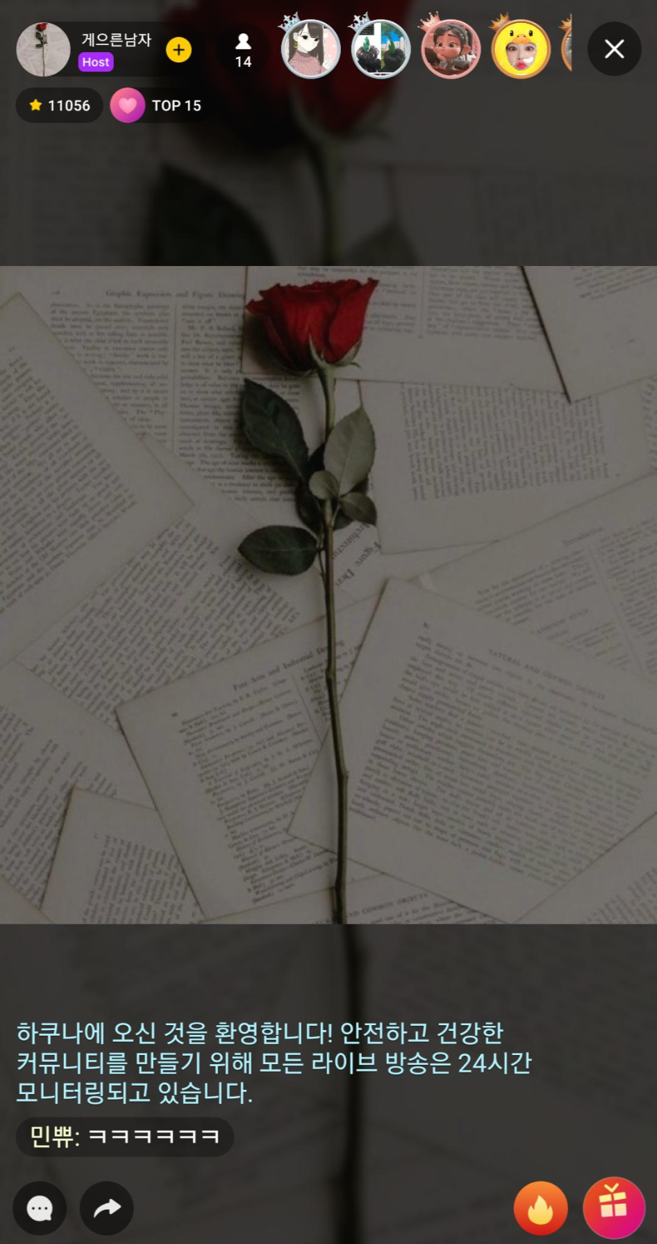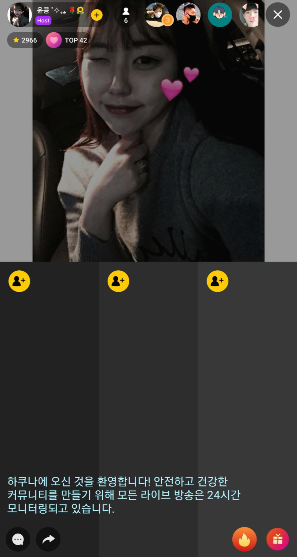 다 함께 놀면서 방송하는 요즘 라이브, 하쿠나! 😀 게스트 라이브로 다함께! - 하쿠나에서는 시청자가 게스트로 참여해 함께 방송할 수 있어요. - 여러 명의 게스트를 자유롭게 초대해 방송의 재