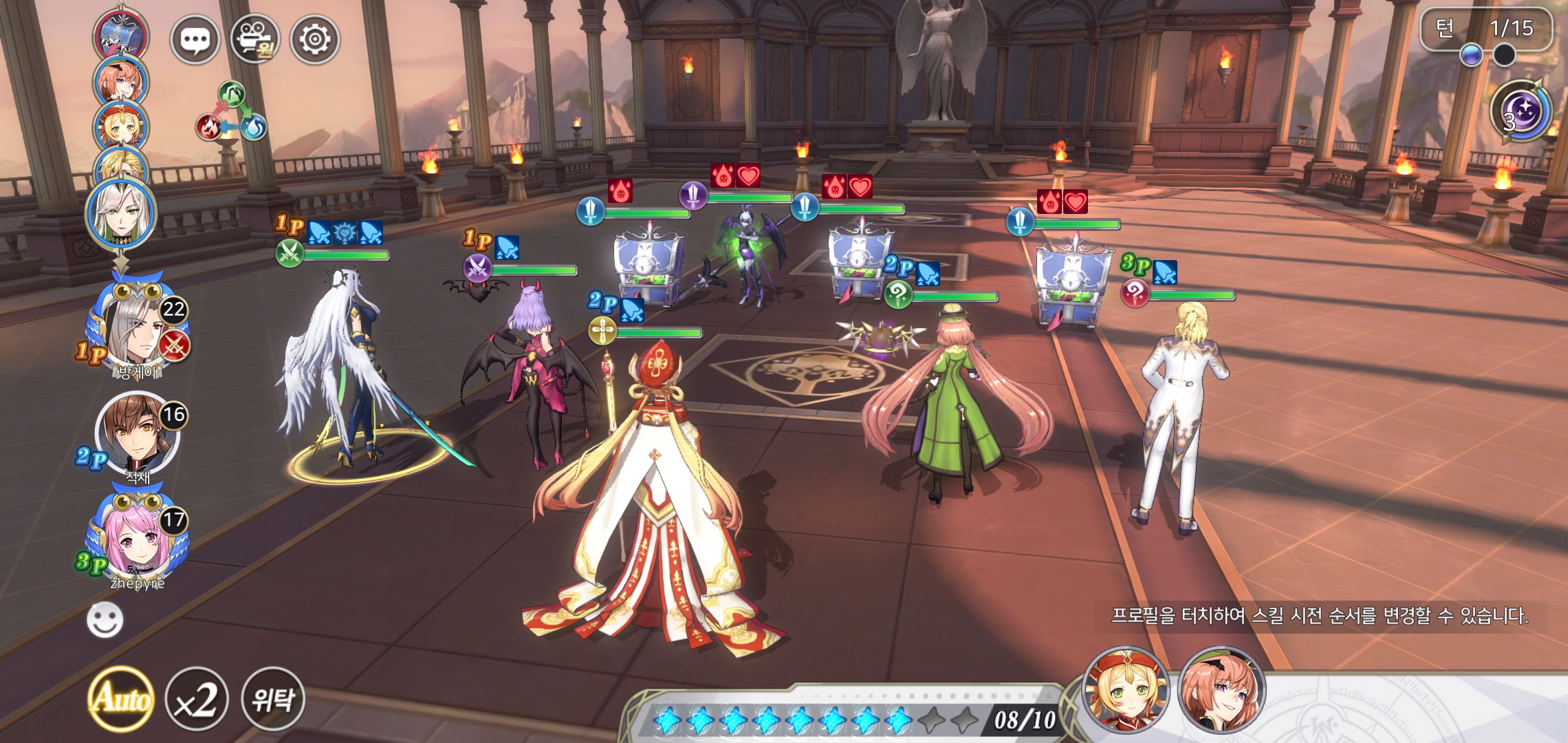 스테이지를 클리어 하기 위해 진행되는 전투는 보유한 영웅들을 조합해 최고의 시너지를 내는 전략적인 부분이 상당합니다. 턴제로 진행되는 공격은 영웅들을 선택 하나의 적을 상대하는 일점사 방식도 가능하고, 자동모드를 통해 별도의 조작 없이도 클리어 할 수 있는 방법으로 진행하게 됩니다.