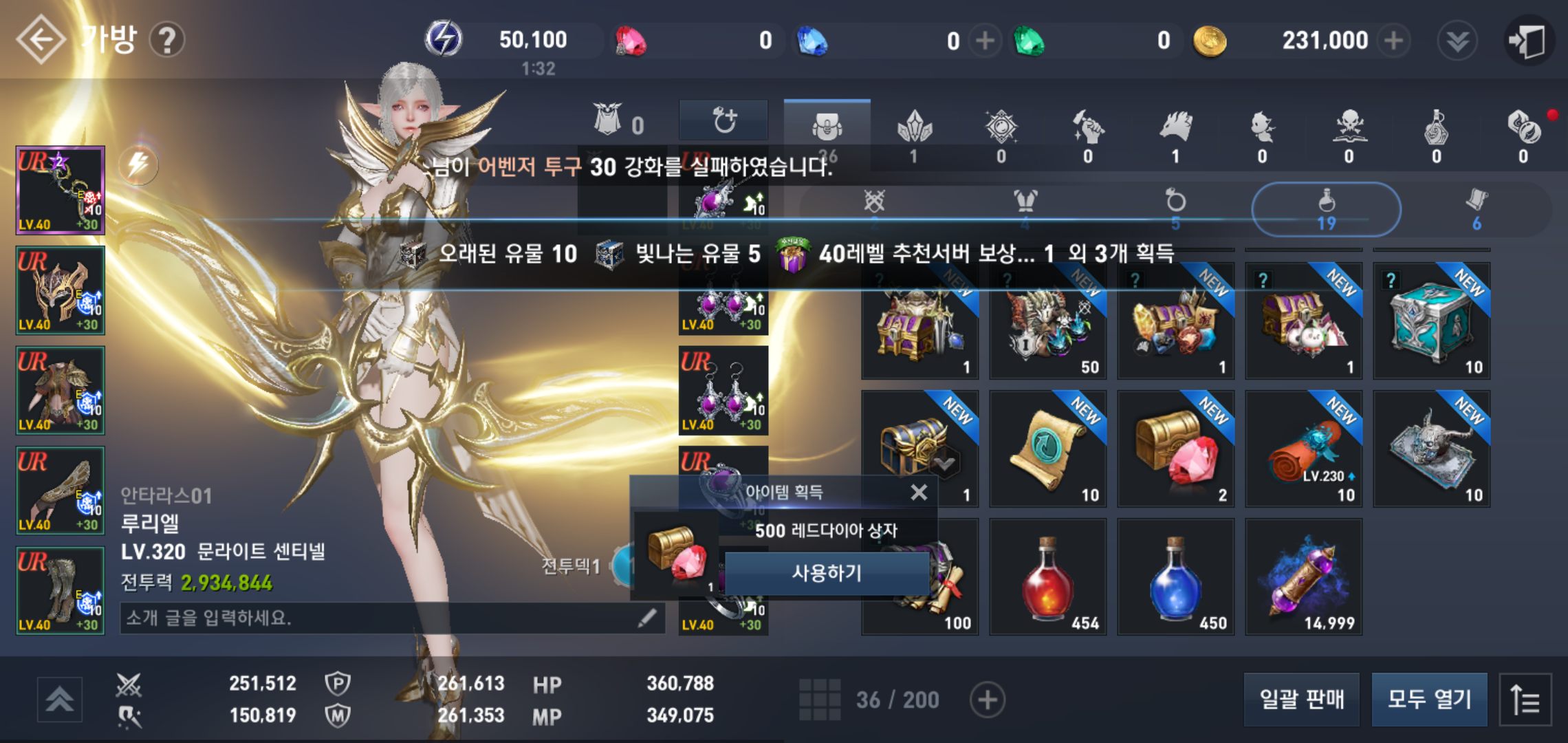 특히 리니지2 레볼루션에 구성된 여러 서버중에서도 신서버 안타라스를 선택해야 하는 이유는 출석만해도 강화주문서 1000장을 받을 수 있기 때문입니다. 플레이 여부에 상관 없이 출석만 하면 되는데요, 첫날 강화주문서 상자 100개를 시작으로 14일째 되는 날까지 획득 가능한 주문서가 1000장을 넘어가 놓치면 두고두고 아쉬움이 남을 것 같습니다.