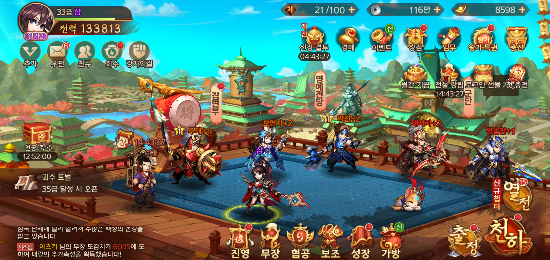 할만한게임 그랑삼국의 전투는 미리 진영으로 구성해둔 무장을 바탕으로 적진을 쓰러트리는 방식입니다. 그만큼 무장 개개인이 가지고 있는 전투력은 전력의 핵심이라고 해도 과언이 아니기 때문에 빠른 진행을 원한다면 무장들을 육성하고 유저 레벨을 올리는 것이 중요합니다.