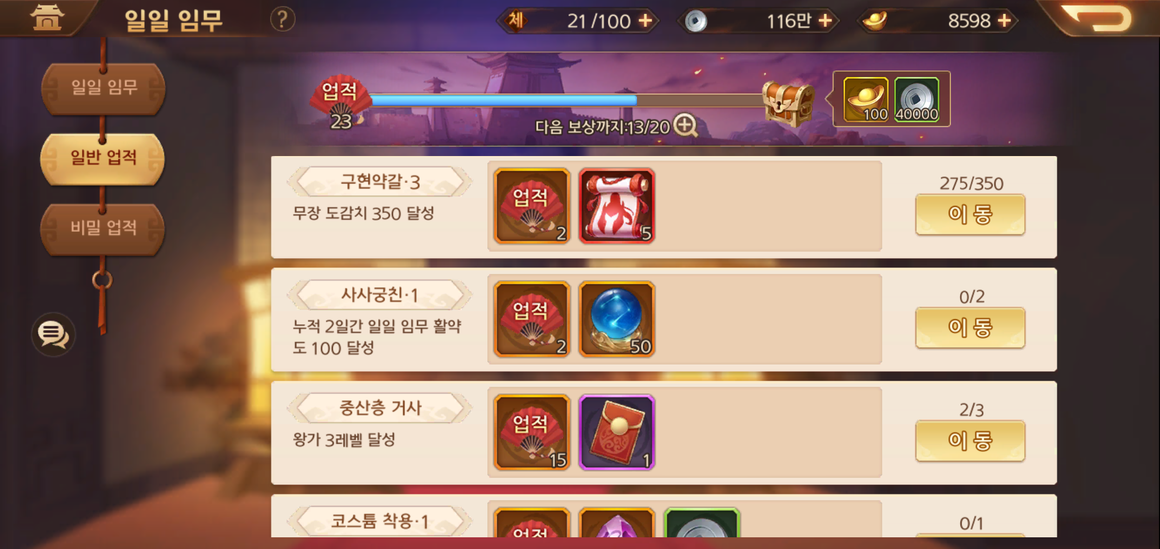 무장 육성의 경우 출정을 통해 전투를 진행하는 방식이 기본이 됩니다. 하지만 체력은 여유롭고 시간은 여의치 않는다면 진급에 필요한 아이템을 수급하기 위한 소탕을 활용하는 것이 유리합니다. 단 소탕은 한 번 이상은 클리어 했던 스테이지만 가능하기 때문에 틈틈히 스토리 진행을 해두어야 하구요.