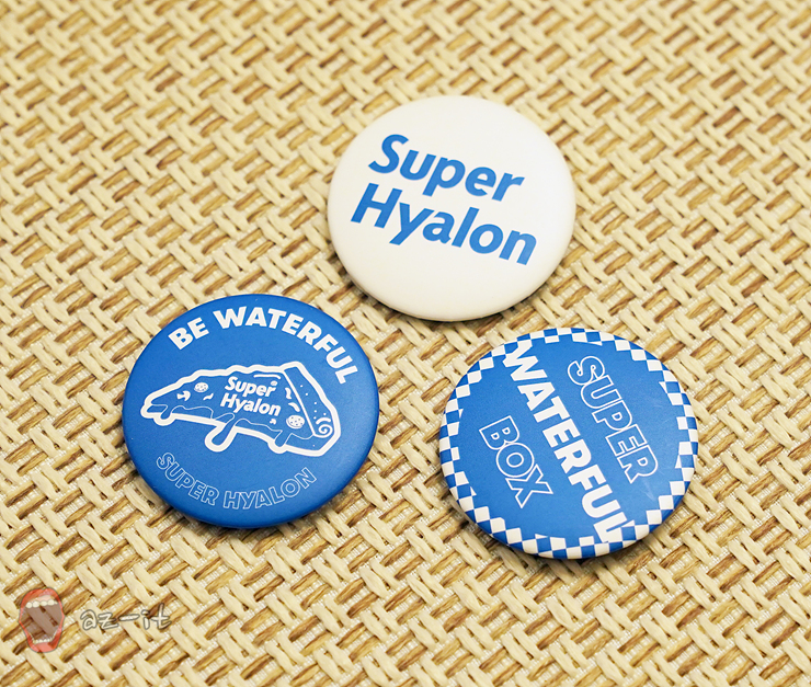 푸르른 바다가 연상되는 VT 슈퍼 워터풀박스 한정판을 열어보니 슈퍼히알론 집중케어제품과 함께 리플렛 엽서, 코믹북, 스티커패키지, 콜드컵 그리고 핀뱃지와 슈퍼히알론 양말까지 깨알 구성으로 준비되어 있었습니다! 굿즈는 실용성 넘치는 제품들로 구성되어 있어 더욱 마음에 들더군요.