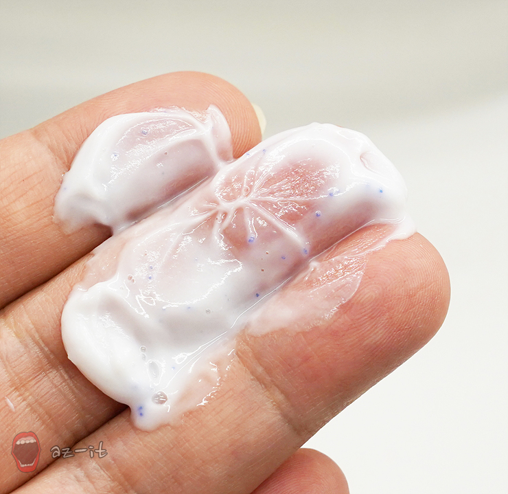 크림을 덜어 사용하는 것이 아니라 펌핑을 눌러주면 적당량의 크림이 쏙 나오기 때문에 사용하기도 편리합니다. 얼굴 전체에 골고루 펴 바르려면 펌핑을 두 번 정도하면 딱 맞더라구요. 크림 속에 보이는 작은 알갱이들은 얼굴에 바르면서 으깨져 흔적도 없이 사라진답니다.