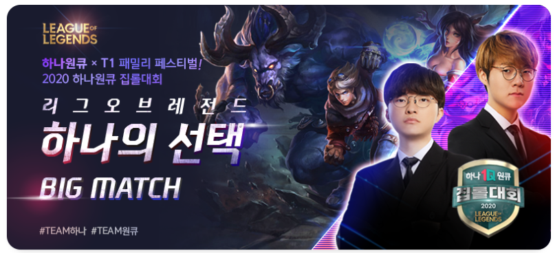 국내뿐 아니라 전 세계적으로 선풍적인 인기를 가지고 있는 리그오브레전드 온라인게임 명문팀인 T1과 하나은행이 함께하는 리그오브레전드 2020 하나원큐 집롤대회가 개최된다고 합니다. 이번 대회의 경우 총상금 3,650만원과 푸짐한 경품 및 부상까지 엄청난 규모로 진행한다는 소식이 전해져 자세한 내용을 정리해보았습니다.