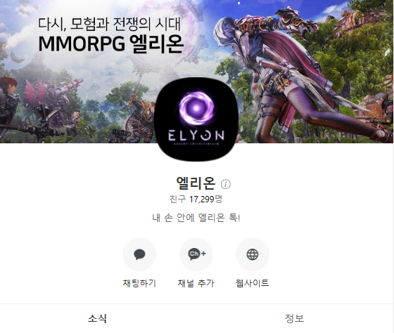 엘리온과 관련된 소식은 카카오톡채널을 통해 보다 빠르게 확인 가능합니다. 그랜드 오픈을 앞두고 새로운 소식을 빠르게 들을 수 있는 만큼 사전예약과 함께 톡채널 추가도 잊지마시고, 12월 10일 그랜드오픈과 함께 엘리온의 특별한 세계에 빠져보시기 바랍니다!!