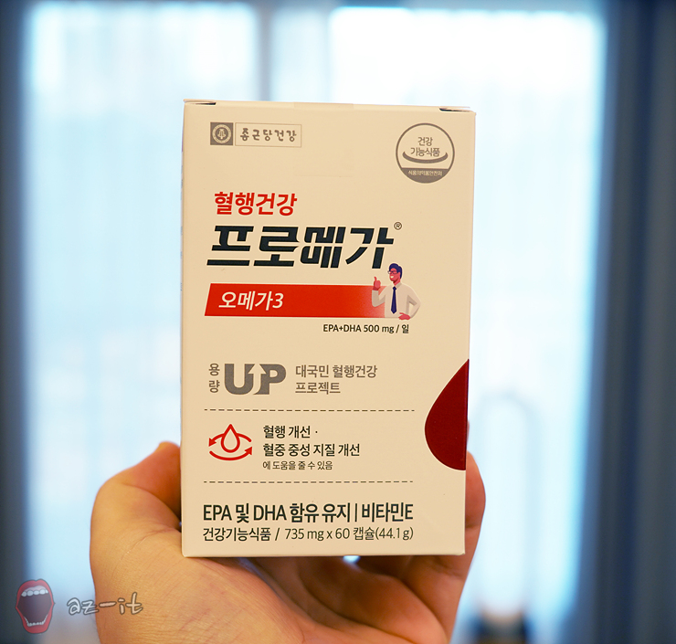 혈행건강이 중요한 이유도 알고, 체내에서 합성되지 않는 불포화지방산이기 때문에 음식으로만 섭취해야 한다는 점도 알지만, 마음처럼 챙기는게 어려운 만큼 음식을 챙기는 대신 종근당건강 프로메가 오메가3를 챙기기 시작했습니다. 일일이 음식을 챙기지 않아도 하루 한알이면 필요한 양을 챙길 수 있으니 우선 편해서 좋더군요.