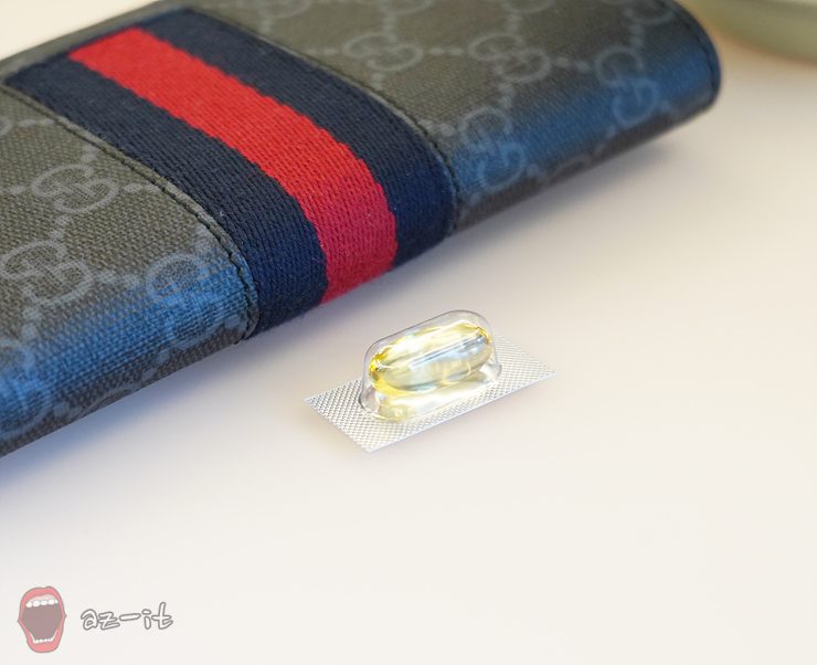 한 손에 들고 다니는 장지갑이나, 에어팟과 비교해 보면 크기가 얼마나 작은지 알 수 있습니다. 캡슐 사이즈가 크면 아무리 물을 마셔도 넘기기가 힘들어 챙겨 먹는일이 어렵기 마련인데요, 프로메가 오메가3는 필요 함량은 충분히 가지고 있으면서 캡슐 사이는 작아 알약을 넘기는게 쉽지 않은 분들도 부담이 덜할 것 같습니다.
