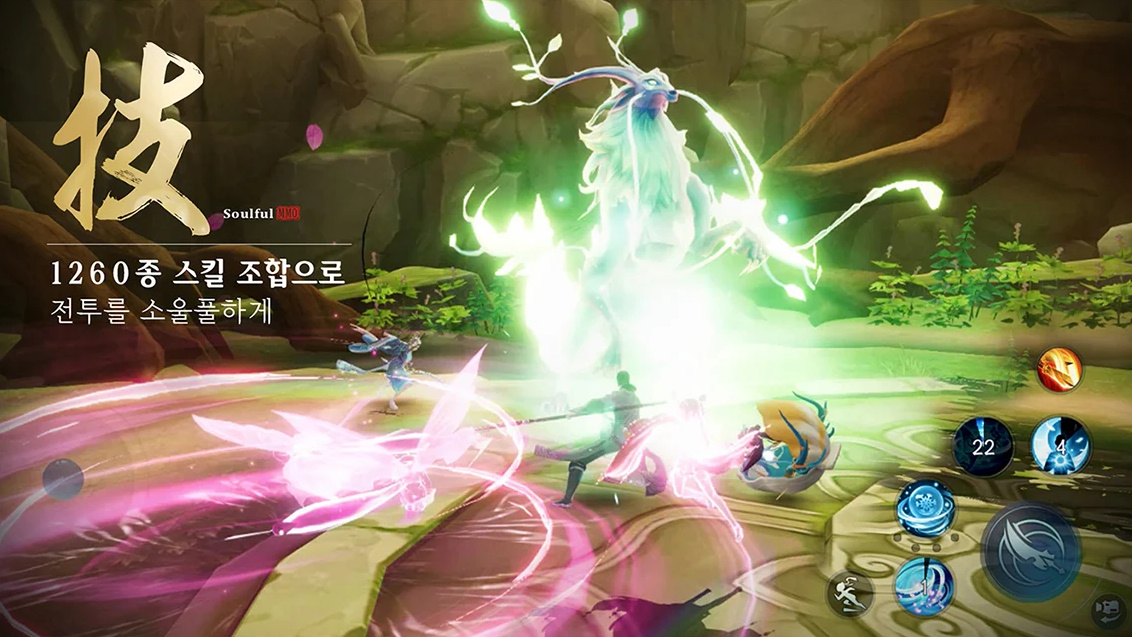 전투 방식에서도 특별한 세계관을 담고 있어서 인지 더 화려하고, 신비스러운 연출들이 특별하게 느껴질 정도입니다. 특히 1260종 스킬 조합으로 전투를 소울풀하게 진행할 수 있는 부분은 기존 모바일MMORPG에서 벗어나 다양한 전략과 전투가 이뤄질 것으로 보이는데요, 시작과 동시에 각양각색의 스킬 조합에 따른 유저들의 반응이 궁금해질 정도입니다.