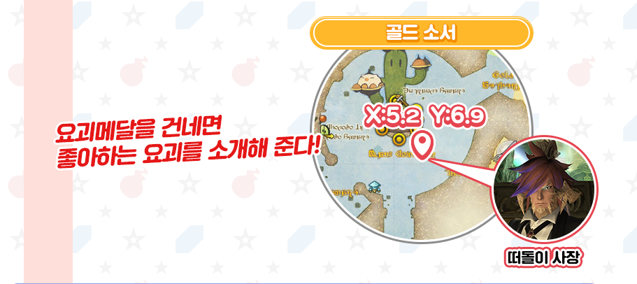 요괴워치를 장착하고 신생, 창천, 홍련 지역의 돌발임무를 수행하면서 요괴메달을 모으고, 골드소서에 위치한 떠돌이 사장에게 건네주면 좋아하는 요괴를 소개받을 수 있습니다. 요괴와 친구가 되면 꼬마친구로 불러낼수 있어 함께 모험을 즐길 수 있기도 합니다.