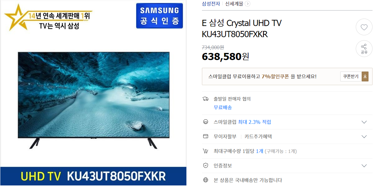 생생한 화질과 크리스탈 디스플레이 4K가 특징인 크리스탈 UHD TV도 이번 디지털 빅세일에 포함되었습니다. 4K UHD 화면은 FHD보다 4배 많은 픽셀로 구성되어 있어 선명한 화면을 즐길 수 있는 특별함을 가지고 있습니다. 또한 사람이 보는 눈으로 보는 것과 최대한 가깝게 밝기의 범위를 넓혀주어 아주 밝은 장면부터 어두운 장면까지 디테일한 시청이 가능하며, 3면에 베젤이 거의 없어 몰입도 높은 영상을 시청할 수 있는 장점을 가지고 있습니다.