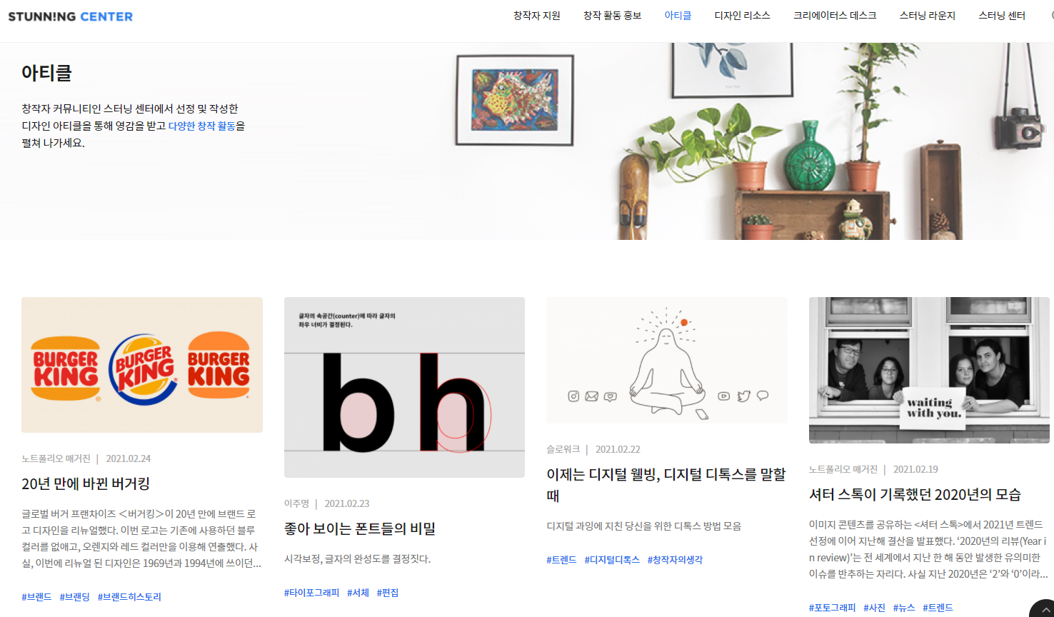 디자이너들에게 유용한 아티클과 컨텐츠를 참고할 수 있고, 참고용 디자인부터 포트폴리오등 꼭 필요한 여러가지 소스까지 제공해주는 디자인참고사이트는 쉽게 접하기 어려운데요, 이젠 어디서 도움을 받으면 좋을지 고민하지 마시고, 스터닝센터에 접속해 디자인의 퀄리티를 한층 높여보시기 바랍니다!
