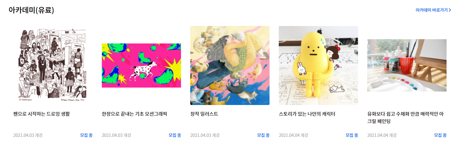 스터닝센터에서는 아카데미도 운영하고 있어 일러스트나, 모션그래픽등 필요한 작업을 수강할 수 있기도 합니다. 단순히 디자이너를 위한 교육이 아닌, 관심있는 누구라도 조건이 맞으면 수강할 수 있다고 하니 참고하시기 바랍니다.