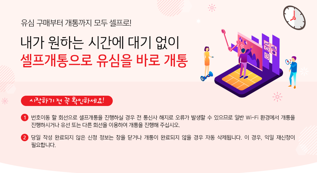 주변에서 알뜰폰 대리점이 없다고 하는 분들도 고민할 필요가 없습니다. 유심 구매부터 개통까지 모두 셀프로 가능하기 때문인데요, 유심을 가지고 있는 경우 간편하게 신청서를 작성하고, 유심을 장착하면 셀프개통이 완료됩니다. 유심이 없더라도 집 근처 편의점이나 Kt엠모바일 공식 홈페이지를 통해 유심을 구매한 뒤 진행하면 5분 내외로 개통을 할 수 있으니 이보다 더 편한 방법이 있을까 싶을 정도 입니다.