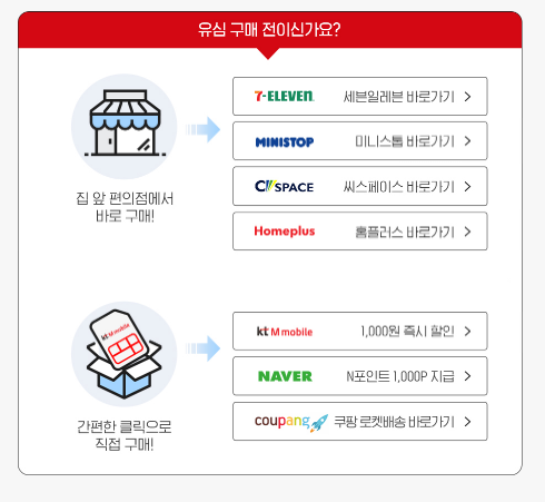 유심구매시 주어지는 혜택도 받을 수 있습니다., Kt엠모바일 공식홈페이지에서 구매하면 1,000원 즉시 할인이 가능하고, 네이버 스마트스토어의 경우 N포인트 1,000를 받거나 쿠팡 로켓배송으로 보다 빠르게 받아볼 수 있어 원하는 방식을 선택하면 됩니다.