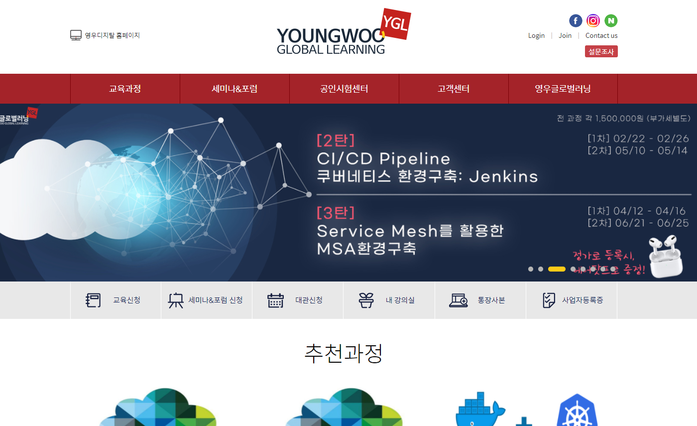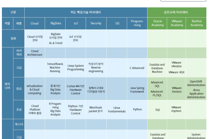 영우글로벌러닝은 3년 연속 고용노동부 인증교육센터로 신뢰도 높은 IT 전문 교육기관 입니다. 풍부한 글로벌 ICT 유통사업 경험을 바탕으로 다양한 소프트웨어 교육을 실시하고 있는 글로벌 ICT 인재 양성 교육기관으로 최신 교육 인프라 제공 및 ICT 최고 전문가를 보유하고 있습니다.
