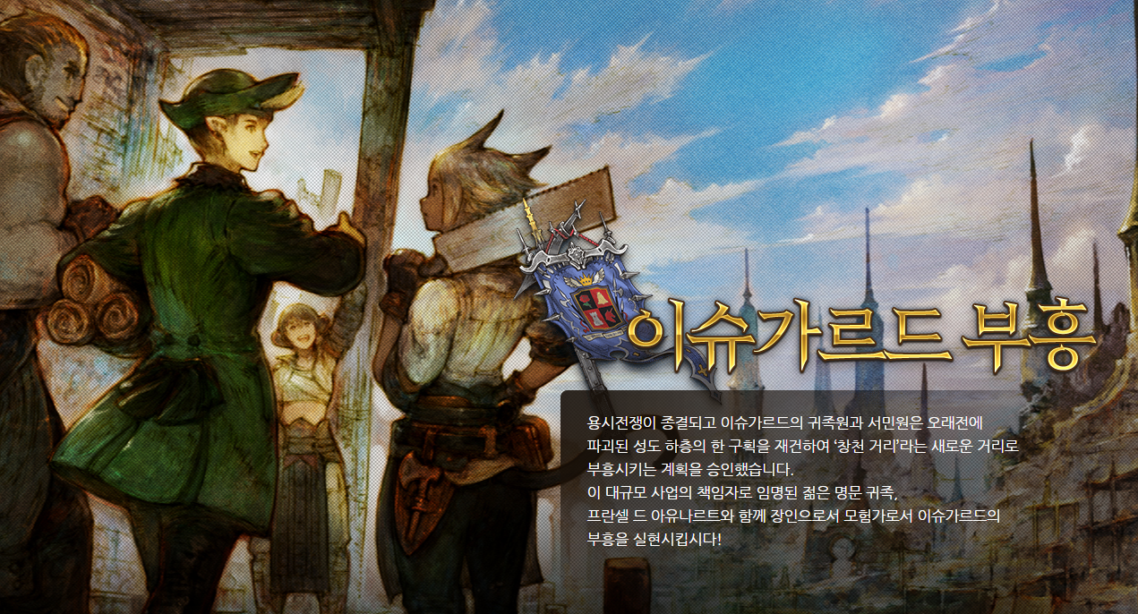 애니메이션에서도 느낄 수 있듯이 다양한 콘텐츠로 즐기는 파판14. 최근에는 이슈가르드부흥 이벤트가 진행 중입니다. 제작자/채집가 중심으로 진행되는 이번 이벤트의 경우, 채집과 제작 레벨링을 보다 수월하게 할 수 있습니다. 동시에 보상 아이템도 상당한데요, 헤어부터 연기교본, 탈것등 다양하게 준비되어 있으니 정해진 방식이 아닌 나만의 온라인RPG를 즐기고 싶은 분들이라면 서둘러 파이널판타지14에 접속해 보시기 바랍니다.