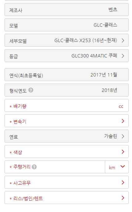 차량을 등록하면서 기재가 어려운 부분이 있지는 않을까 내심 걱정했었는데요, 옵션들을 선택하는 데 있어 여러 조건이 구성되어 있어 현재 보유한 차량에 맞는 선택이 가능했습니다.