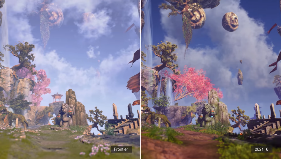 6월 대규모 업데이트를 통해 언리얼4엔진을 적용한 화면은 기존 프론티어 그래픽보다 훨씬 자연스럽고 선명하면서도 블소답다라는 말이 어울리는 그래픽을 선보여주고 있습니다. 전체적인 풍경부터 디테일한 부분까지 달라진 부분들이 살아있다는 느낌이 들 정도이니 말이죠.