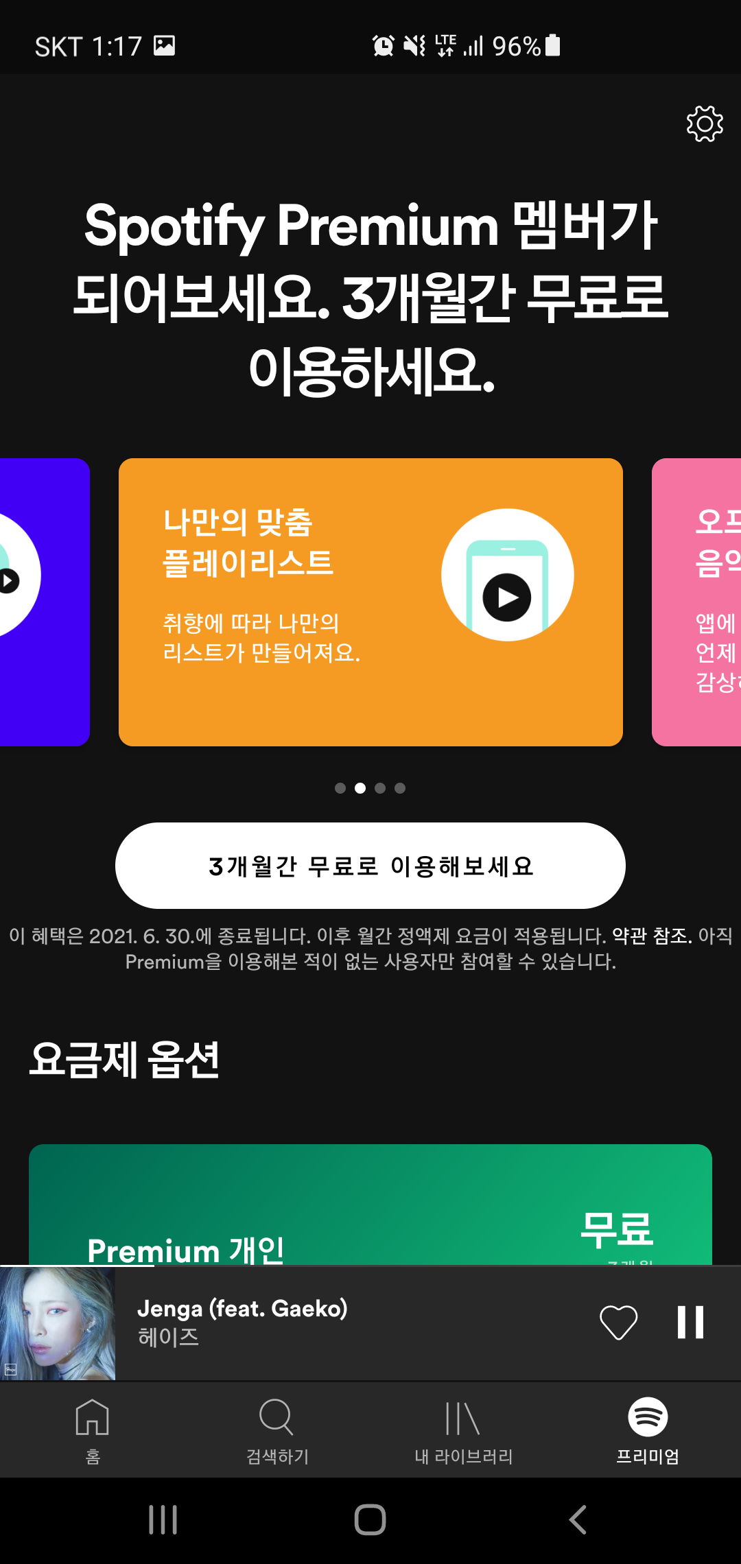 음악앱추천 스포티파이는 다양한 음악을 폭 넓은 상황으로 들을 수 있는 부분에 있어서는 으뜸인것 같습니다. 이용료가 생각보다 저렴하지 않다는 아쉬움이 있지만, 현재 제공되는 3개월 무료를 활용해보고 그 후에 결정해도 늦지 않을 것 같습니다. 3개월 무료혜택은 6월 30일까지만 제공되니 잊지마시구요!!