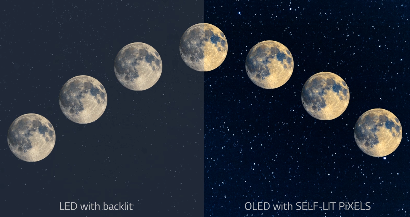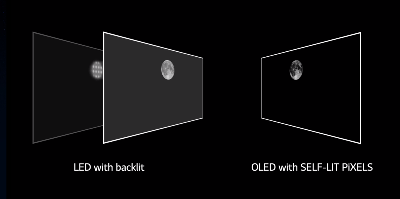 LG 올레드 TV 화질의 차이는 백라이트가 없는 올레드 패널에 있습니다. LCD(LED) TV의 경우 스스로 빛을 낼 수 없기 때문에 TV 뒤쫏에서 빛을 빛추어 주는 조명을 필요로 하는데요, 이를 백라이트라고 합니다. 백라이트 유무의 차이가 상당한데요, 백라이트가 없는 TV는 올레드 TV가 유일하다는 점이 중요합니다.