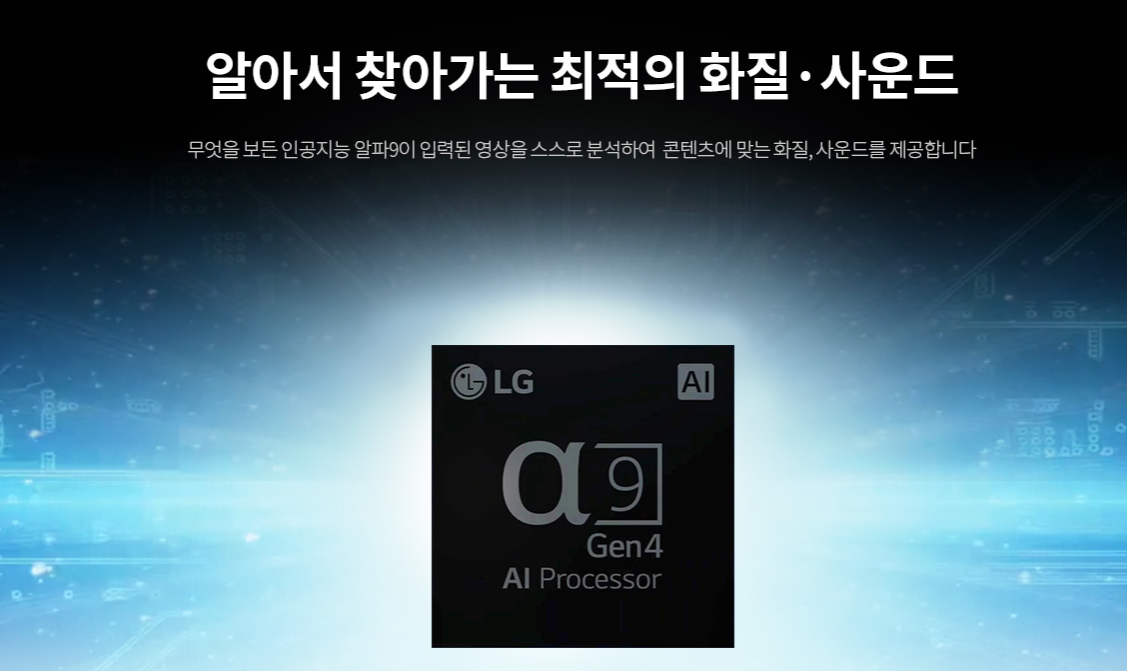 4세대 인공지능 알파9가 탑재되어 화질과 사운드를 딥러닝을 통해 사전 학습한 데이터를 바탕으로 업스케일링과 업믹스를 지원합니다. 또한 올레드 소자 성능을 한층 업그레이드 하면서 더 밝은 화면을 보여주고, 보다 더욱 정확한 색표현이 가능해졌습니다.