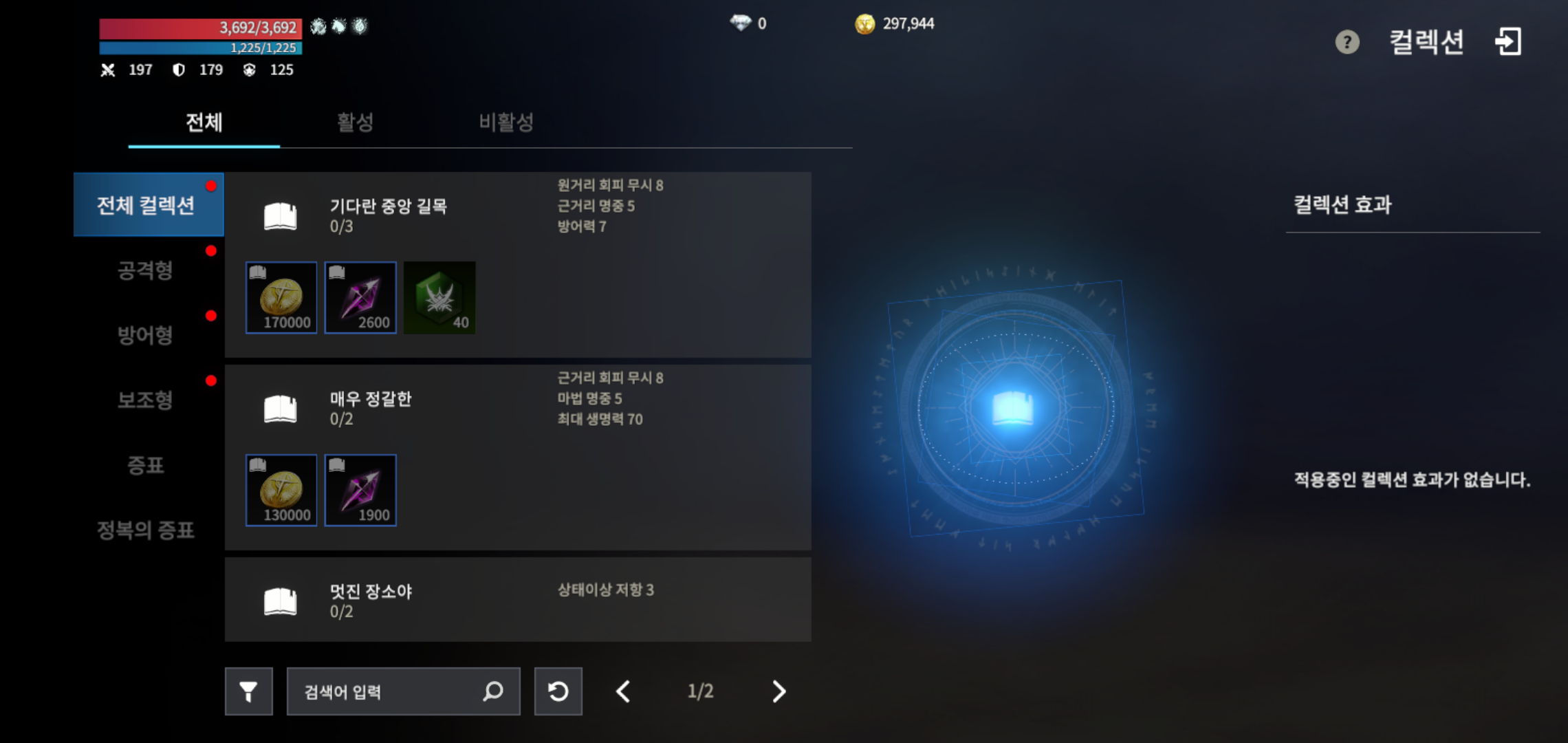 필드와 유적 그리고 유저간 전투등 다양한 콘텐츠외에도 아이템 컬렉션을 완성해 능력치를 올리는 부분이라던가, 5군단, 시공의 틈, 시련의 성벽등 다양한 콘텐츠가 준비되어 있어 즐길거리가 풍성한데요, 덕분에 지루할틈 없는 플레이를 즐기는 중입니다.