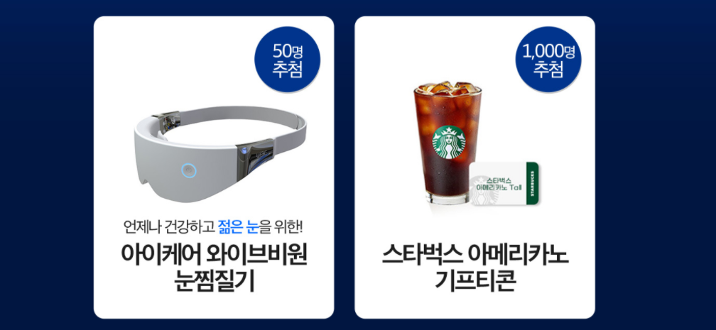 TVCF 런칭 기념 구매 이벤트도 진행 중입니다. 위메프, 티몬, 지마켓, 11번가 그리고 GS SHOP과 홈&쇼핑에서 구매하면 추첨을 통해 아이케어 와이브비원 눈찜질기와 스타벅스 아메리카노 기프티콘을 추첨을 통해 지급한다고 하니 아이클리어 루테인지아잔틴으로 눈노화케어는 물론 선물의 주인공 되어보시기 바랍니다.
