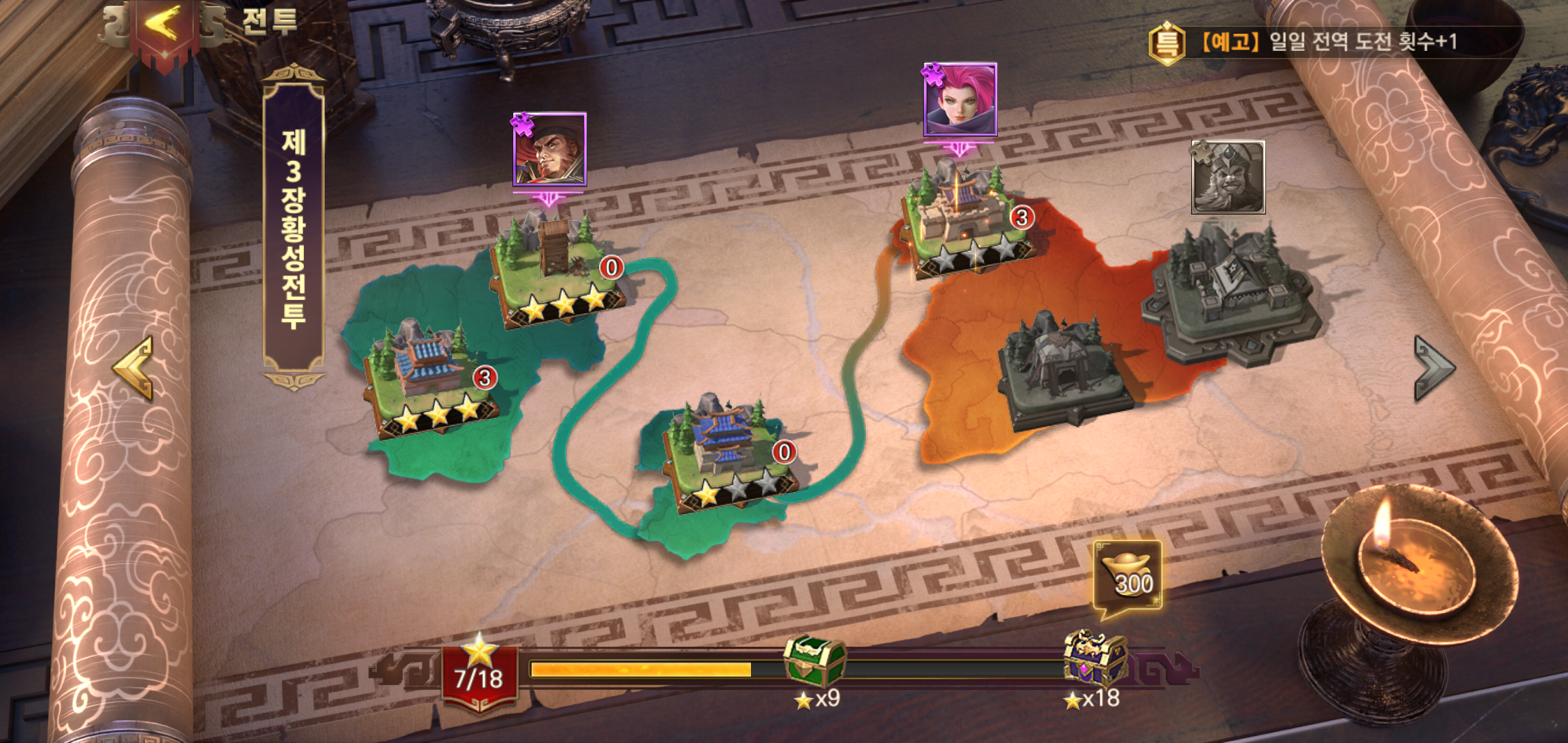 전투는 계속 되어야 하지만, 같은 플레이를 반복적으로 진행하는 건 지루하기 마련인데요, 대규모 전장에서 펼쳐지는 치열한 전투를 클리어 했다면 이후부터는 직접 참여하지 않아도 소탕메뉴를 활용한 빠른 플레이가 가능합니다. 최초 진행만 신경쓰면 나머지는 수월하기 때문에 새로운 스테이지나 전략이나 전술을 구성하는데 유리한 부분이기도 합니다.