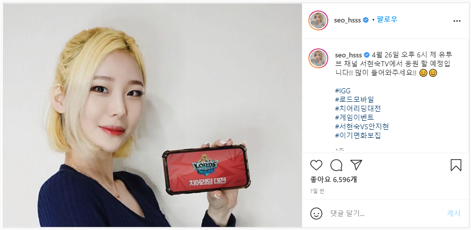 지난 4월 26일에는 안지현, 서현숙 두 치어리더가 유튜브 방송을 통해 로드모바일에 대한 특징과 치어리딩 대전에 대한 이야기를 나누는 시간을 가지기도 했습니다. 먼저 로드모바일에 대한 설명이 이어졌는데요, 멀티 플레이 전투와 제국 건설에 이르는 다양한 콘텐츠로 구글 플레이스토어 기준 1억 다운로드를 돌파할 정도의 많은 인기를 가지고 있기도 한 만큼 꿀잼은 보장합니다.