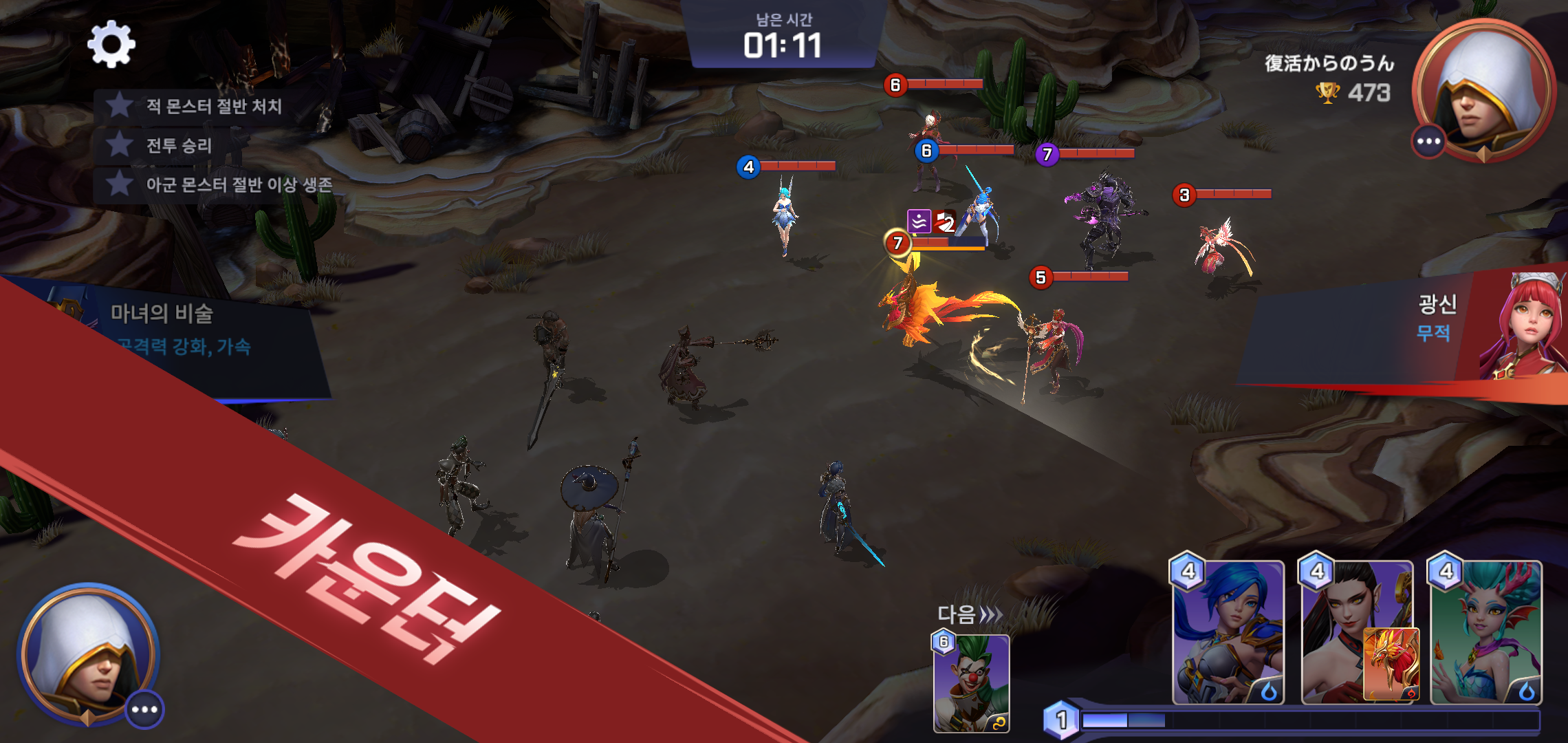 특히 연적의 한방으로 불리는 카운터 스킬은 한 번의 공격으로 역전을 노릴 수 있는 부분으로 서머너즈 워: 백년전쟁 전략의 중요한 요소입니다. 사실 타이밍에 맞춰 날려주는 카운터 만큼 속시원한게 없는데요, 상대에게 날릴 때는 한판승부를 기대할 수 있기도 하지만, 막상 당하는 입장이 되면 왠지 모를 아쉬움이 생기게 되더군요.