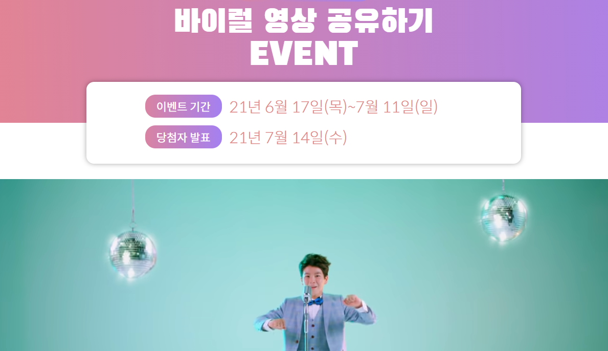 비어럴 영상 공유하기 이벤트도 진행됩니다. 정동원이 등장해 동행세일을 홍보 영상을 원하는 SNS를 선택해 공유하는 방식인데요, 추첨을 통해 맑음 공기청정기를 비롯한 신세계 백화점 상품권, 스타벅스 아이스 아메리카노 기프티콘등등 푸짐한 선물을 지급합니다.