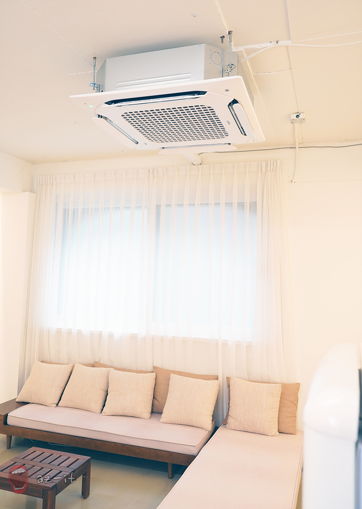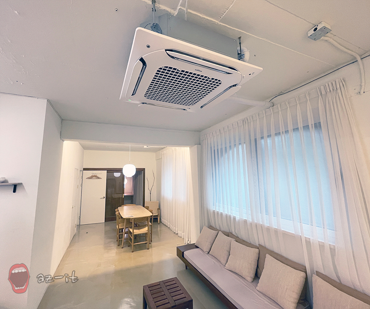 명동에 위치한 에어비엔비에 설치된 LG 휘센 인공지능 3.0 듀얼베인 시스템에어컨은 천정형 제품으로 효율적인 공간 활용과 코지한 인테리어와 잘 어울려 이질감 없는 공간을 연출하고 있어 편안한 느낌이 들었습니다.