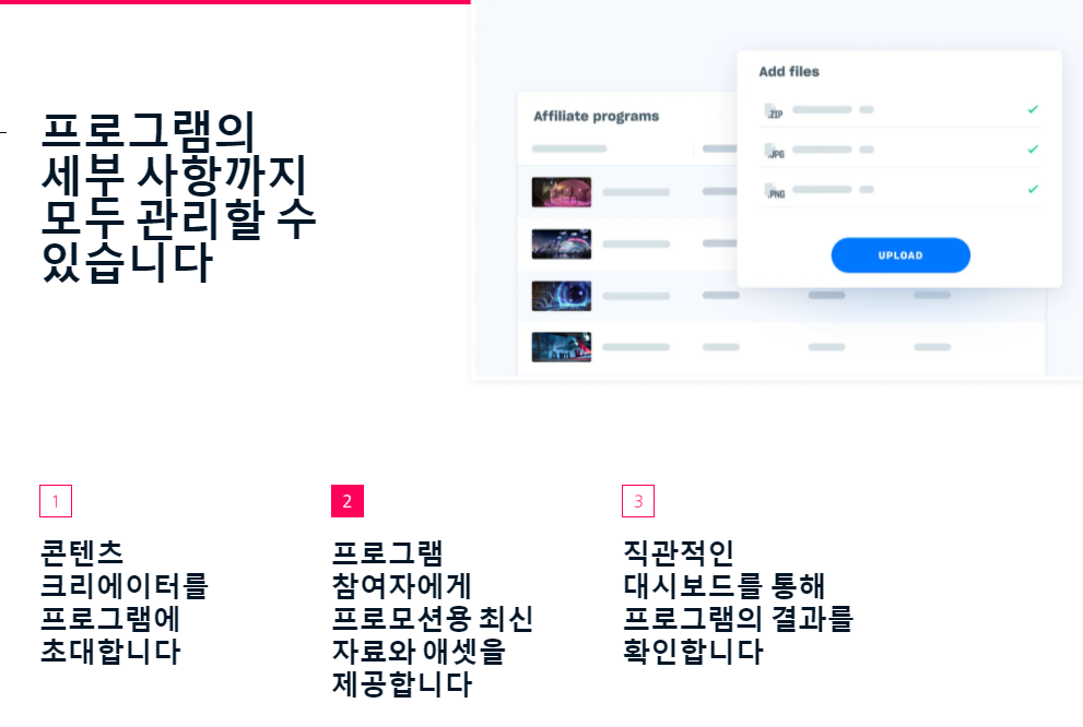 스폰서십 모델은 일정 조건과 지표, 목표에 따라 특정 인플루언서에게 얼마나 보상을 지급해야 할지 개발사에서 결정해야 합니다. 콘텐츠 안정화와 프로그램 예산을 정한 후 함께 작업하고 싶은 인플루언서만 초대 가능하며, 하나의 대시보드를 통해 전 세계의 인플루언서를 관리하고 관련 데이터를 확인할 수 있는 장점을 가지고 있습니다.