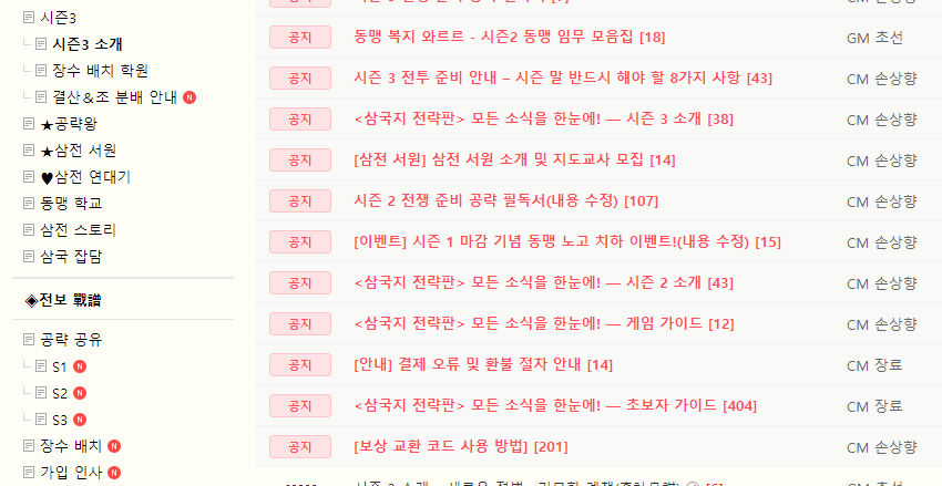 삼국지전략판 시즌 3에 대한 내용은 공식카페를 통해 보다 상세하게 확인 가능합니다. 특히 "시즌 3 전쟁 준비 공략 필독서" 게시글을 읽어보면 시즌3 업데이트에 대한 내용들을 보다 자세히 확인할 수 있으니 시작전에 꼭 읽어보시고 시작하시길 추천드립니다.