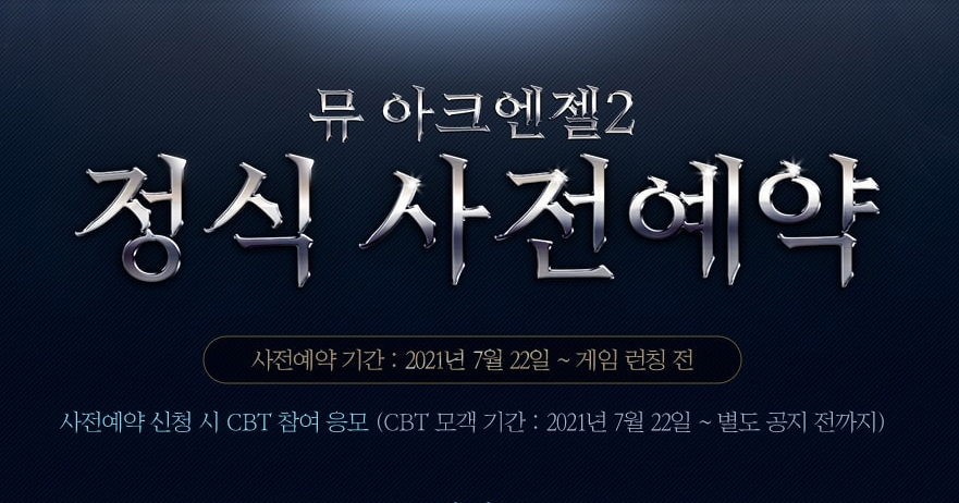 뮤 아크엔젤2 사전예약은 7월 22일 시작으로 게임 런칭 전까지 진행됩니다. 특히 사전예약 신청시 CBT 참여 응모도 가능하다고 하니 서둘러야 할 것 같습니다.
