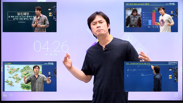 황현필 강사분은 유튜브 채널도 운영 중인데요, 한국사 수험생 뿐만 아니라 일반인들도 역사를 배울 수 있는 영상들이 다수 올라와 있어 도움을 받기도 합니다. 그리고 또 한가지 특별한 점이 현직 강사들 중 전자칠판을 가장 잘 활용하는 강사라는 점입니다.