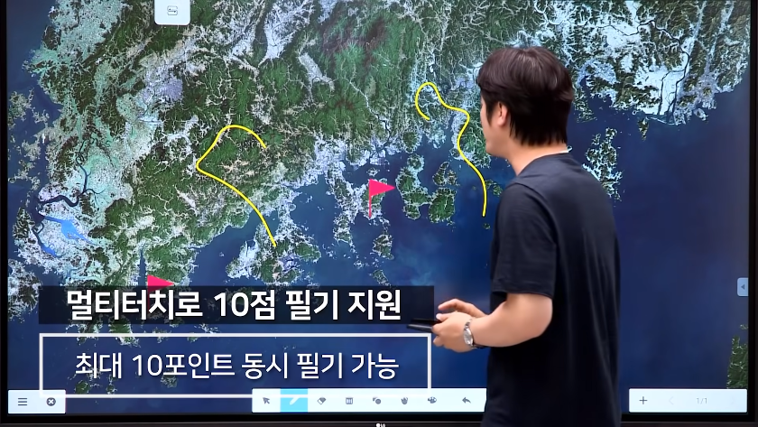 지난 이순신의 23전 23승 실화 유튜브 영상에서는 기존에 진행하던 영상과는 차이가 있었는데요, 기존에 사용하던 전자칠판에서 LG전자칠판으로 바뀌면서 영상의 선명도 차이가 확연히 느껴질 정도였습니다. 기존 전자칠판은 화면 전체를 이용하지 못했는데 전체 화면이 꽉 차더군요.