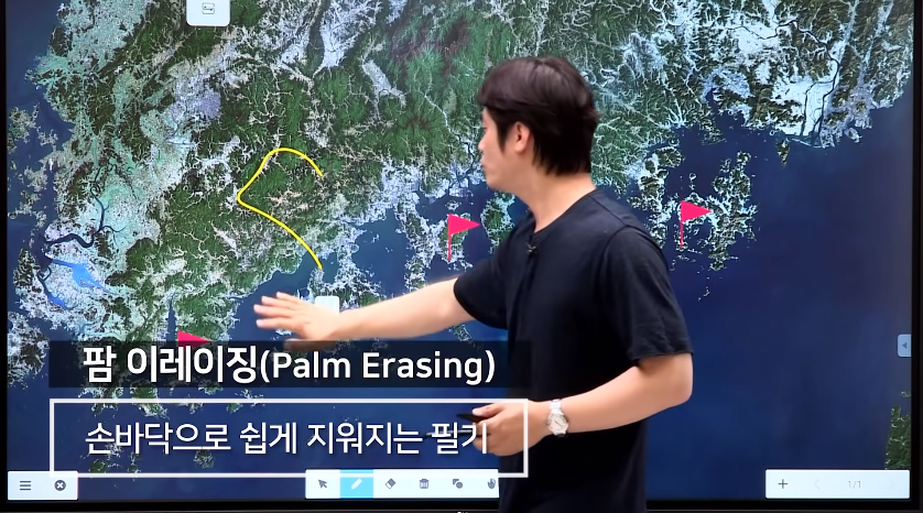 특히 판서 도중 불필요한 부분을 지워야 하는 경우 팜이레이징 기술로 손바닥을 이용해 쉽게 지울 수 있었는데요, 지우개 사이즈도 손바닥 크기에 따라 조절 가능하고, 자유롭게 쓰고 지울 수 있어 효율성을 높여주었는데요, 기능을 설명할 때에도 핵심만 짚어 설명해 주시는 모습에 천상 강사구나 싶은 생각이 들었을 정도입니다.