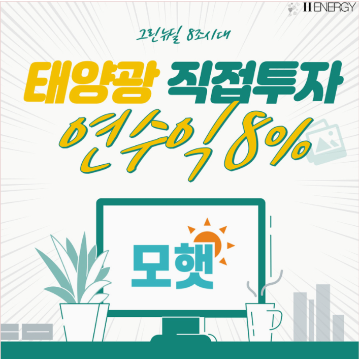 그린뉴딜을 실천하는 에이치에너지사와 협동조합이 함께 신생에너지 태양열 사업에 참여해 수익율은 높이고 환경보호까지 실청할 수 있는 방법으로 각광받고있는 모햇 햇살연금. 노후대비를 위한 안정적인 수입을 고민하고 있는 분들이라면 꼭 한번 살펴보시고 선택해보시기 바랍니다.