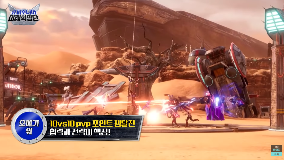 슈퍼주니어와 게스트 4인방이 즐기는 마블 퓨처 레볼루션 오메가 워 플레이는 최대 10 vs 10 규모 PVP 까지 지우너하기 때문에 말 그대로 긴장감 넘치는 플레이를 즐길 수 있는데요, 혼자만 잘한다고 되는 게 아니라, 팀원들끼리 손발이 맞아야 하고 어떤 전략을 가지고 진행하느냐에 따라 승패를 결정하게 됩니다.
