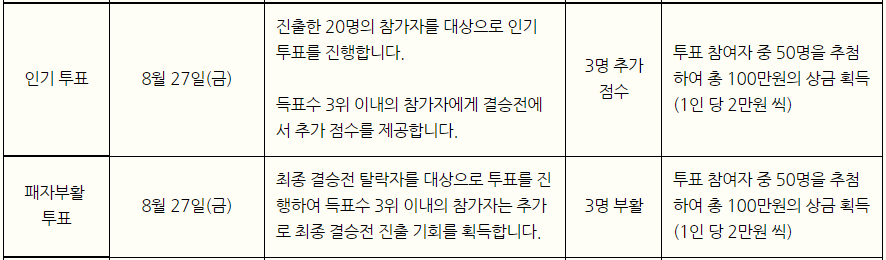 예선전이 끝났기 때문에 도전 삼전왕 퀴즈쇼에 직접 참여는 할 수 없지만, 인기투표와 패자 부활 투표에 참여하면 추첨을 통해 상금을 받을 수 있습니다. 특히 최종 결승전에는 유명 MC와 삼국지 전문가, 스타 유저를 초대해 결승전을 진행한다고 하니 기대해도 좋을 것 같습니다.